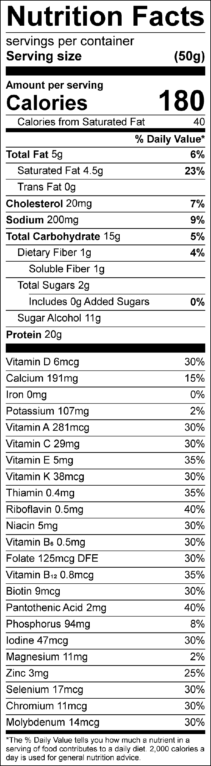 Ingredients: Protein Blend (Whey Protein Concentrate, Milk Protein Isolate, Whey Protein Isolate, Soy Protein Isolate), Yogurt Coating (Maltitol, Palm Kernal Oil, Milk Protein Isolate, Nonfat Dry Milk Solids, Nonfat Yogurt Powder (nonfat dry milk, lactic acid), Soy Lecithin, Natural Flavor), Hydrolyzed Collagen, Glycerin, Maltitol Syrup, Water, Cream Cheese Blend, Soluble Corn Fiber, Blueberries, Natural Flavors, Salt, Soy Lecithin, Multivitamins (Ascorbic Acid, dl-Alpha Tocopheryl Acetate, Zinc Citrate, Folic Acid, Maltodextrin, Niacinamide, Vitamin A Palmitate, Phytonadione, Ergocalciferol, Calcium D-Pantothenate, Sodium Selenite, Sodium Molybdate, Chromium Chloride, Biotin, Cyanocobalamin, Pyridoxine Hydrochloride, Potassium Iodide, Thiamine Mononitrate, Riboflavin), Sucralose.
