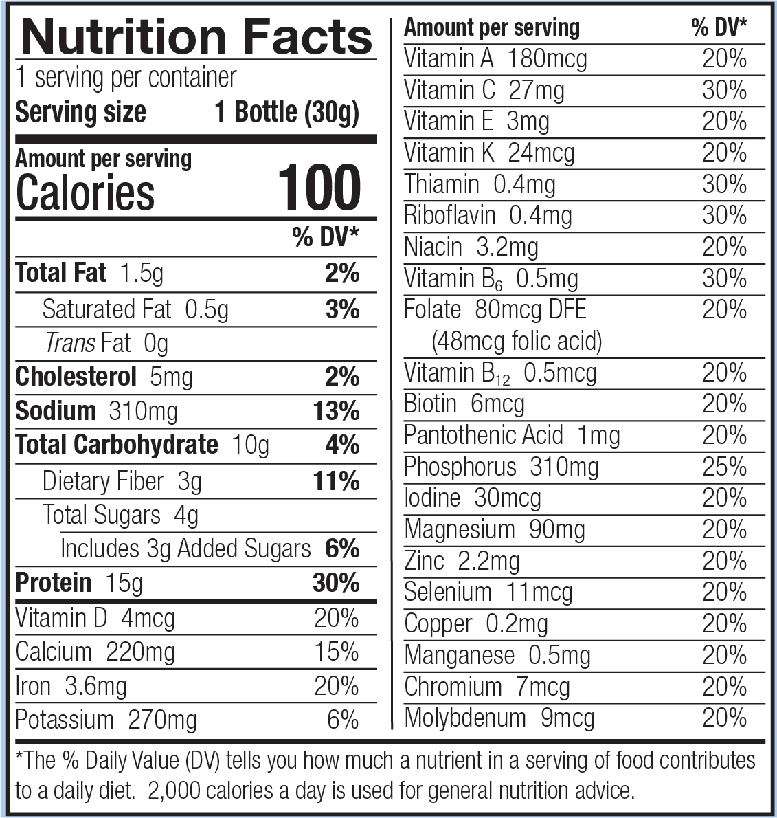 Rich, creamy, and satisfying — our Chocolate Salted Caramel Shake in a Bottle packs 15g protein, essential vitamins, minerals, and CoQ10. Just add water, shake, and enjoy. Egg Free, Gluten Free, Soy Free, Nut Free, Kosher.